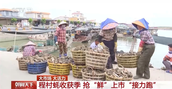 程村镇是我国首批国家农业产业强镇之一,如今,从蚝苗培育、标准养殖到加工、销售运输,当地已经形成程村蚝全产业链,生蚝年产量约5.8万吨,年产值约6.39亿。“五一”期间,将有约4000吨生蚝通过四通八达的物流网络奔向全国各地。