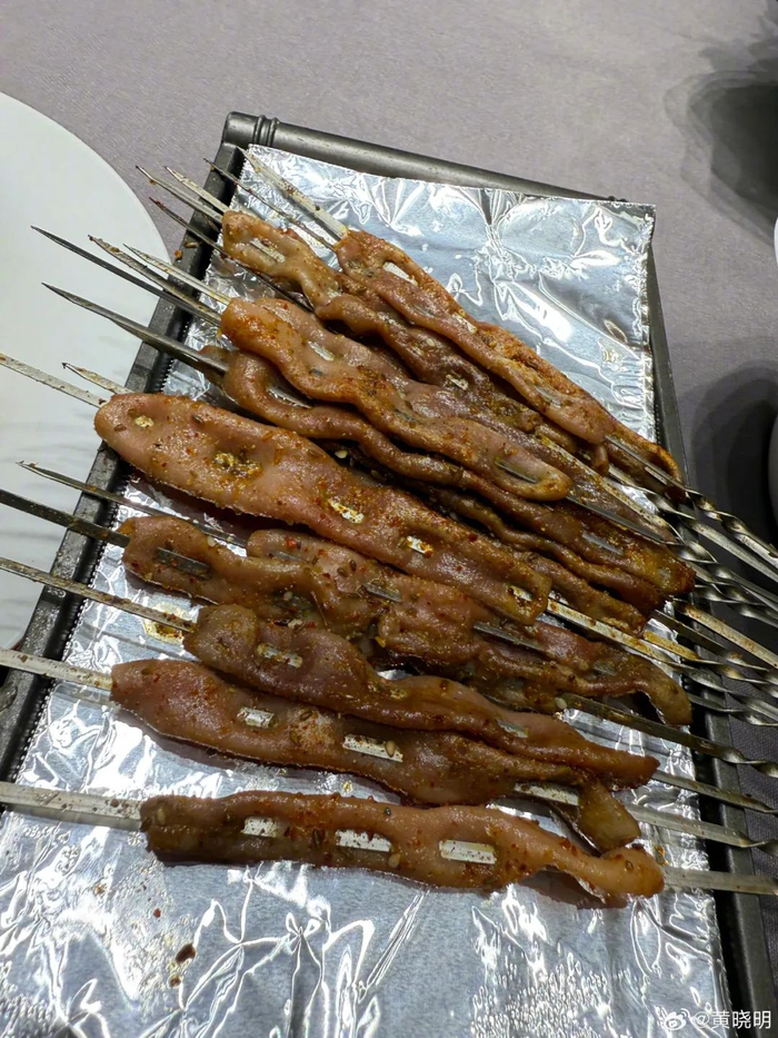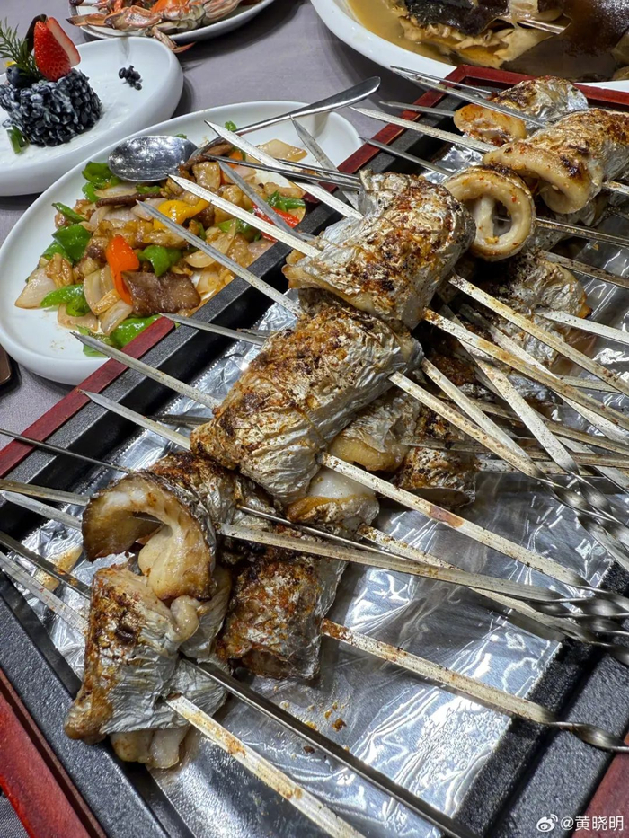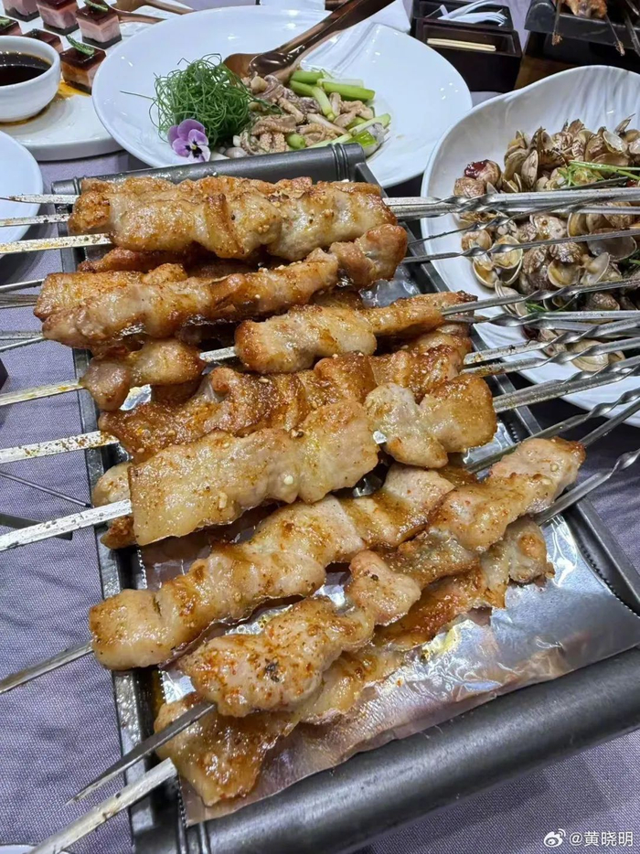 “前两天,刚在台上说要吃青岛烧烤,所以今天就是以烧烤为主!