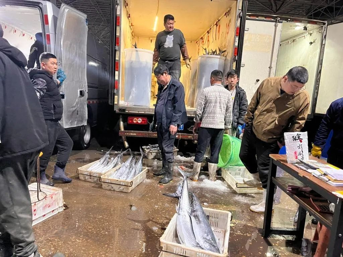 从事鲅鱼批发的李经理告诉记者,他们拉来了3万多吨鲅鱼,到凌晨三点左右,已经卖得七七八八了。