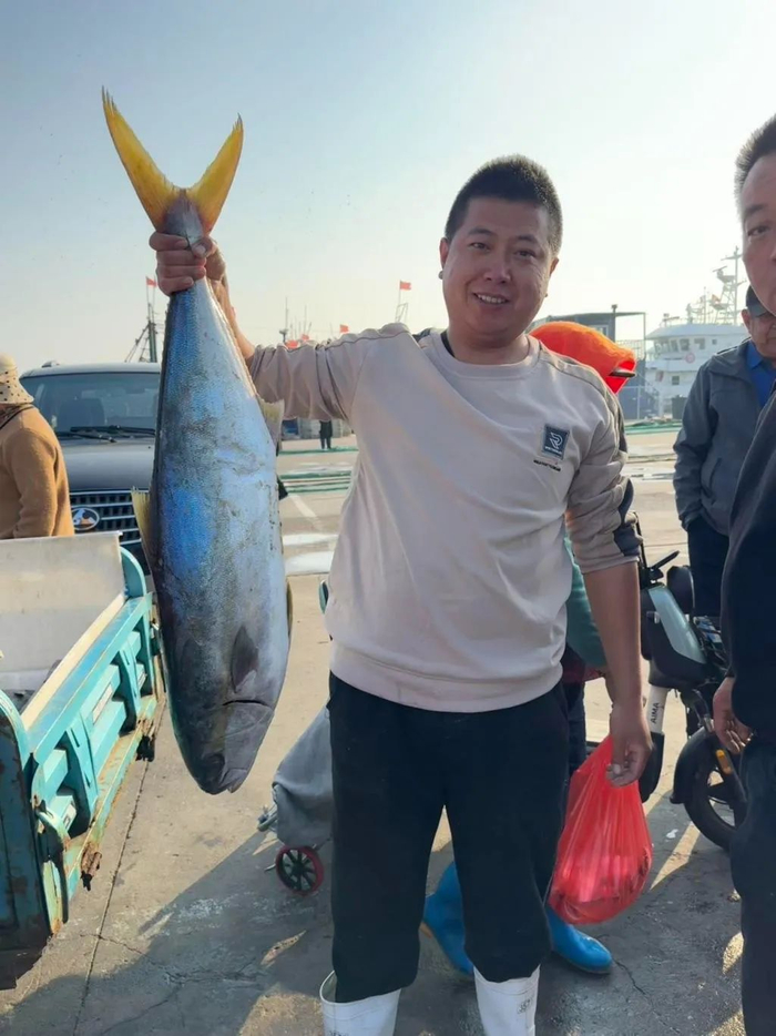 “这次出海还有比这更大更肥的鲅鱼,最大的黄金鲅有100多斤,拎起来得到腰,很肥。