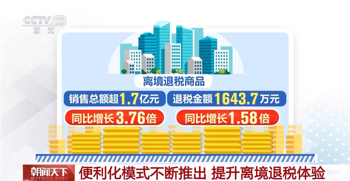离境退税“一单一包”便利化模式,在深圳的三大核心商圈启动试点,目前,深圳备案离境退税商店超过400家,离境退税商品销售总额超1.7亿元,退税金额1643.7万元,同比分别增长3.76倍和1.58倍。下一步,商务部门将推出更多优化措施,激发境外旅客消费活力。