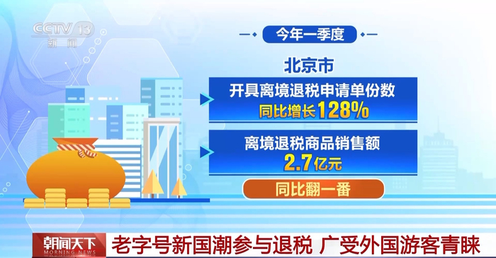 这些带有中国传统文化元素的特色商品深受外国人喜爱,来京购物的第一站,他们都会选择老字号和国货潮品店。自从国家优化了离境退税政策,将起退点从500元下调至200元,现金退税限额由1万元大幅上调至2万元,北京多个退税商店销量普遍有所增加。