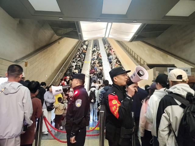 据八达岭长城站派出所政委裴迎峰介绍,“五一”假期前两天,各站客流量平稳有序。今天是假期的第3天,八达岭长城站迎来客流高峰。针对出现的大客流,派出所加强站区巡逻巡视,并在进站安检区、候车室检票口、出站大扶梯等重点部位增设执勤岗位,与车站客运人员一起维护好旅客乘降秩序,全力确保旅客安全进出站。