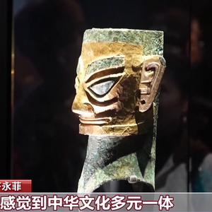 游客 齐永菲:参观过很多的博物馆,来到三星堆博物馆,我也发现各个博物馆的文物有很多相似点,感觉到中华文化多元一体。