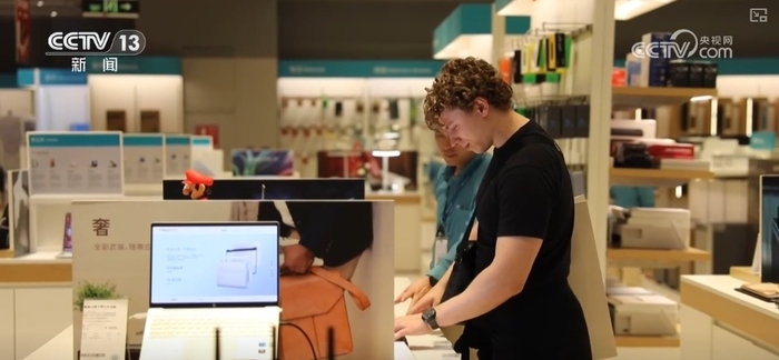 不仅传统国货受到外国人青睐,科技感满满的国产智能产品也让老外惊叹不已。2025年“五一”假期,深圳一家商场的电子产品柜台前人头攒动,在众多消费者中,有不少外国人在选购。