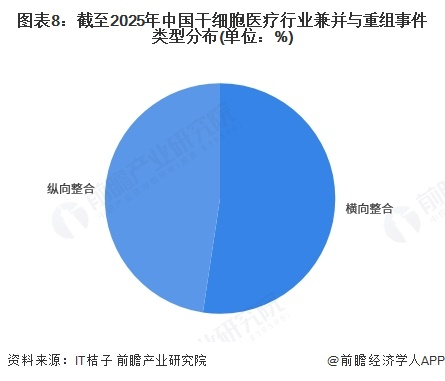截至2025年中国干细胞医疗行业兼并与重组事件中以横向整合的类型为主,占比超过52%。