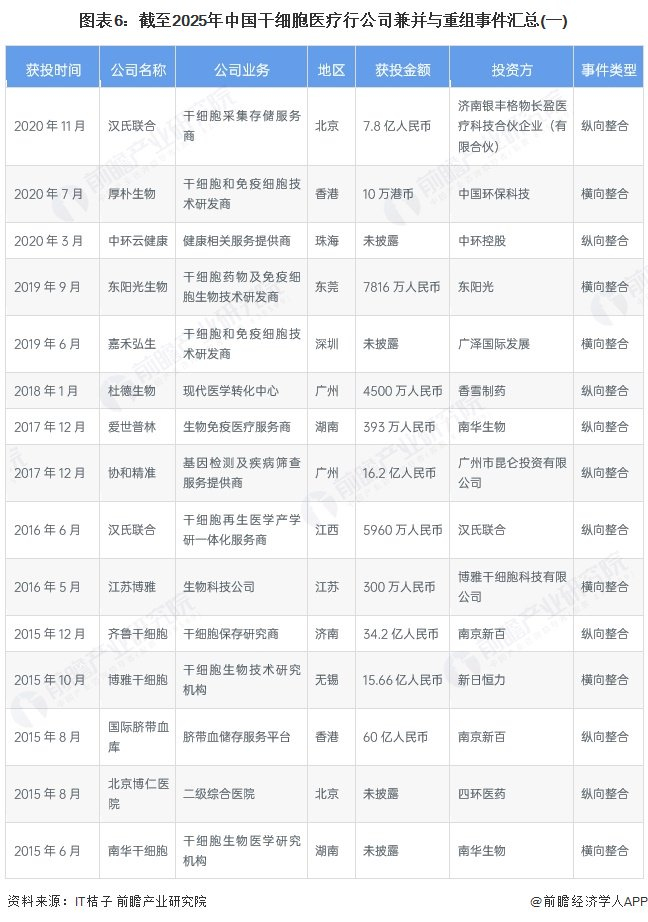 【投资视角】启示2025:中国干细胞医疗行业投融资及兼并重组分析(附投融资汇总和兼并重组等)