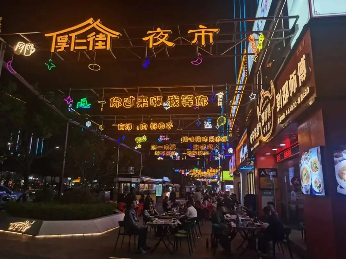 厚仁街的美食夜市沿街而设,90余家摊位整齐排列。除了浙江各地的特色美食,北至东北、南抵潮汕,天南海北的美食都能在这里品尝到。