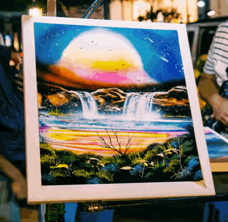 每到下午五点左右,武林夜市就集体出摊了。在这里,不论是大人还是小孩,都可以找到自己感兴趣的摊位。除去传统意义上的夜市,武林夜市最大的特点就是创意市集。油漆画、仿古首饰、帽子……各类创意物件,让你眼花缭乱。
