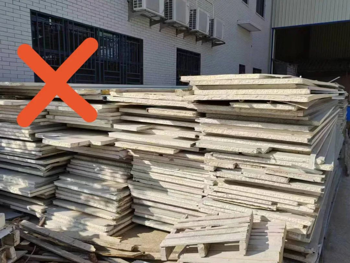 不要使用聚苯乙烯、聚氨酯泡沫等易燃材料填充的泡沫夹芯彩钢板分隔房间。