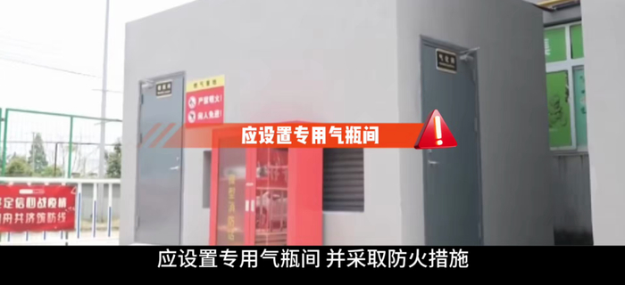 餐饮场所确需使用燃气的,存放气瓶总重量超过100kg应设置专用气瓶间。