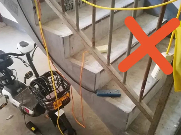室内场所不要停放电动自行车或为其电池充电。