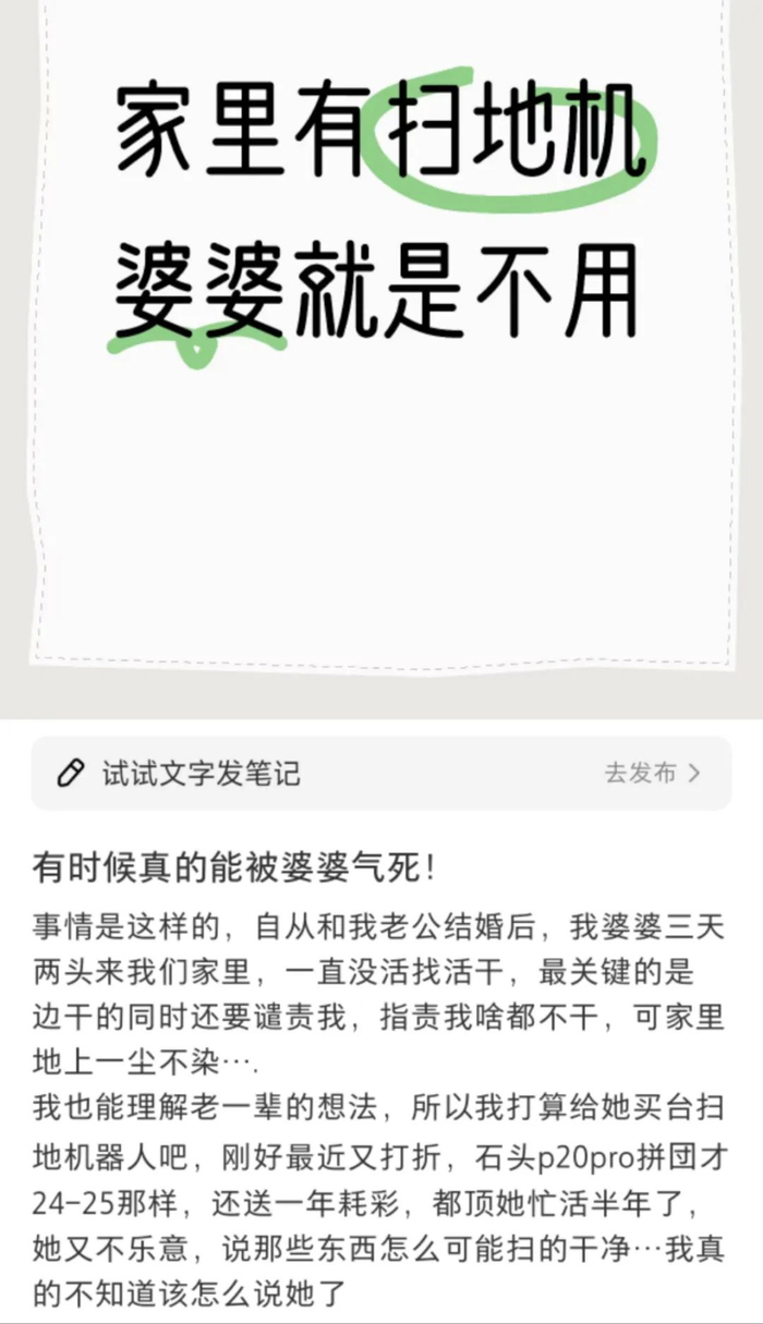 儿媳妇小米说:“它是定点规划路线的,你得多给它点时间适应。”王阿姨不耐烦地挥挥手:“我这点地方,用不着搞那么高科技。”
