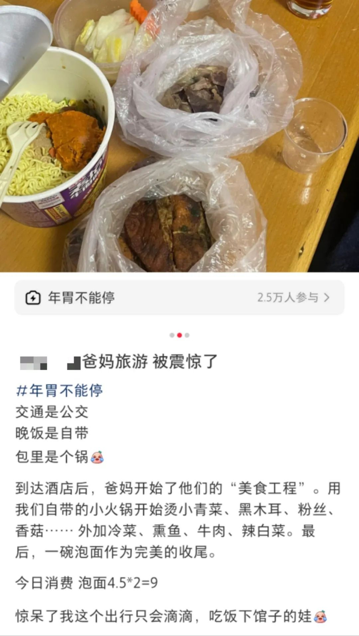 而另一边,父母却退掉了原本买好的飞机票,换成慢吞吞的长途大巴,只因为便宜了两百块。他们坚持带着自家炒的菜、自带的饭盒,一路保温到底;到了目的地,还和民宿老板就一次性床单和矿泉水的收费问题僵持了半小时,最后气得改住快捷酒店。