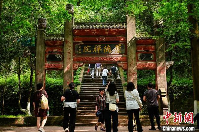 5月3日,四川青神,游客前往中岩寺景德禅院。当日,“五一”假期第3天,四川省眉山市青神县瑞峰镇中岩村中岩寺景区竹林间石板步游道上人来人往,来自四面八方的游客沉浸自然山水,沉醉生态美景,乐享假日休闲时光。中新社记者 刘忠俊 摄