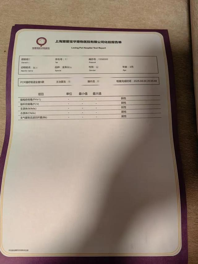 宠物医院诊断病例显示小猫支原体阳性