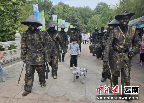 除此之外,茶文化节还是一场文化的碰撞。巡游队伍中,云南特色服饰绚丽多彩、马帮铜人重现古道传承、AI机器狗高科技助阵,民族、历史和科技的融汇,带来耳目一新的视听体验。同时,专业的古筝、琵琶演奏等云南文化演出在八大处“三山八刹”的禅意园林中上演,让身在北京的游客沉浸式体验云南特色,感受茶马古道的时空穿越。