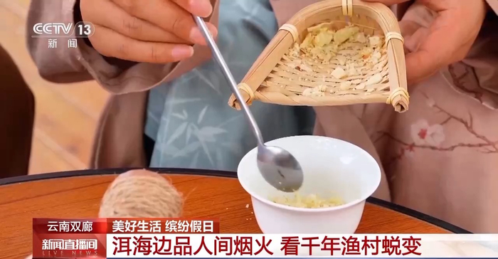 在云南大理双廊,您既可以来一曲畅快的非遗舞蹈霸王鞭;也可以面朝洱海,品一品流传千年的白族三道茶。本地乳扇和米花,漾濞的核桃仁,配上老红糖水,这不是奶茶,而是“甜茶”。乳扇和米花是必选项,其他材料随心搭配,喝下去清甜可口。在第三道茶“回味茶”中,花椒、姜片、桂皮与茶叶同煮,看起来有些“黑暗料理”,但这是云南普洱茶最早的饮用方式,诸味俱全,回味无穷。