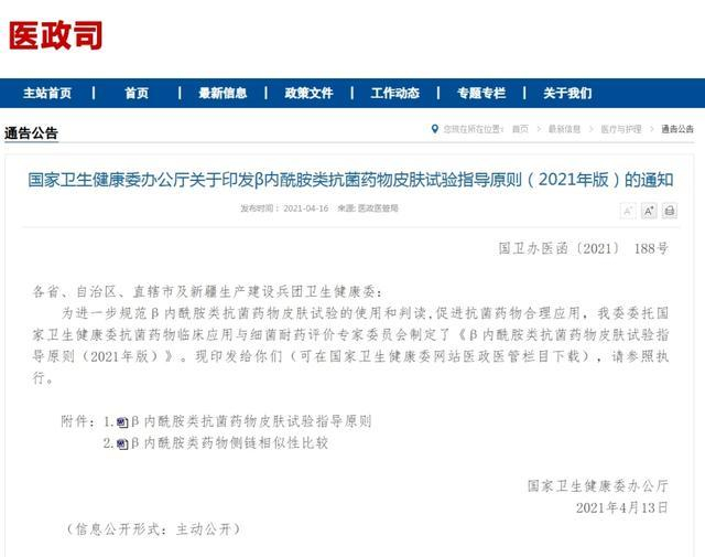 记者注意到,《中国药典》和《抗菌药物临床应用指导原则》均没有头孢菌素类药物进行皮试的规定。2021年国家卫生健康委发布《国家卫生健康委办公厅关于印发β内酰胺类抗菌药物皮肤试验指导原则(2021年版)的通知》(下称指导原则),明确说明不推荐头孢菌素类药物常规皮试(除既往有明确的青霉素或头孢菌素速发型过敏史患者、药品说明书中规定需进行皮试的),并提供了相关循证证据。