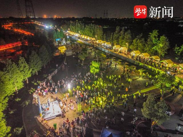 夜幕降临,渔忆长江湿地生态公园亮起多彩灯光。长达9公里的公园步道,犹如长江岸边一条蜿蜒的游龙。晚上7点半,随着动感的鼓点响起,乐队激情开唱。欢快的旋律、美妙的歌声,与江风、夜色相互交融,营造出如梦如幻的浪漫氛围。“在手机上刷到集市的消息,特地约了朋友一起来逛逛,好吃又好玩,太热闹了,这一趟来得真值。”市民蒋美云满脸欣喜地说道。