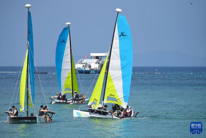 5月3日,在海南省三亚市蜈支洲岛旅游区,游客体验海上旅游项目。“五一”期间,三亚市整合全域旅游资源,从诚信体系完善、交通运力优化、环境卫生整治到投诉处置提速等多维度发力,推出一系列促进旅游服务质量提升的具体措施。