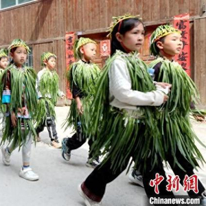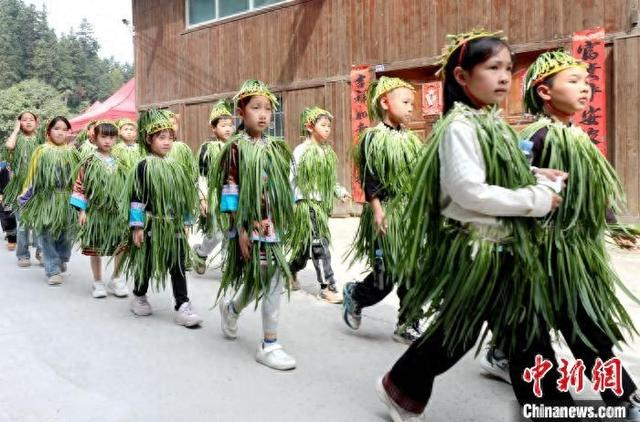 5月3日,广西三江侗族自治县林溪镇高友村举办韭菜节活动,当地民众以民俗巡游、百人纺纱、文艺表演、韭菜擂台赛、多耶、百家宴等精彩节目,展现侗乡多彩文化魅力,吸引各地游客纷至沓来,沉浸式体验侗乡特色风情。图为民俗巡游现场。龚普康 摄