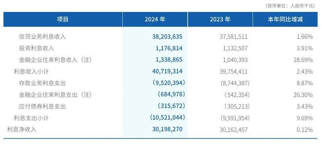 微众银行2024年利息净收入301.98亿元,较上年同期增长0.12%;