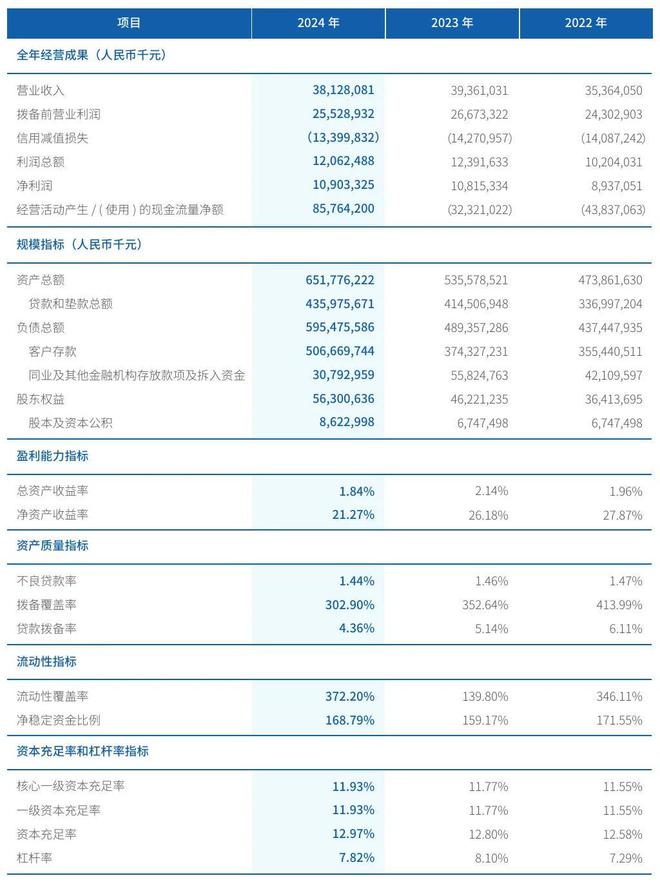 微众银行2024年不良贷款率为1.44%,贷款拨备率为4.36%,核心一级资本充足率为11.93%,杠杆率为7.82%。