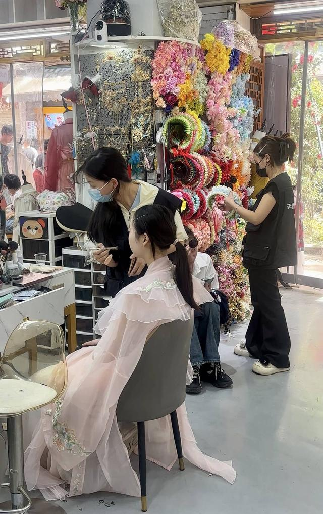 事实证明,她的判断没错。不到两个月,她的投入就回了本,节假日高峰期日接单量能达到七八十单。“今年五一假期,基本上一天的营业额能上万元。”但随着时间推移,她也感受到了变化。“曾经最火的时候,是‘簪花’最盛的时期,整个店里都摆满了簪花。现在风格更多了,苗族、藏族、战国、宋制、唐装……我们也得跟着更新。”