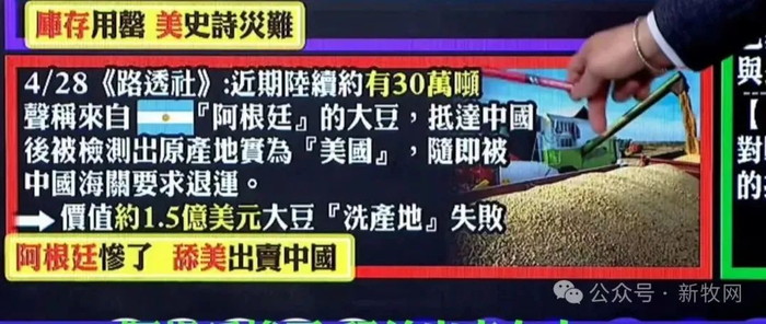国外媒体路透社报道,约30万吨声称来自阿根廷的大豆,在抵达中国港口后,被中国海关检测出真实产地为美国,随即遭到退运,这批大豆价值约1.5亿美元。