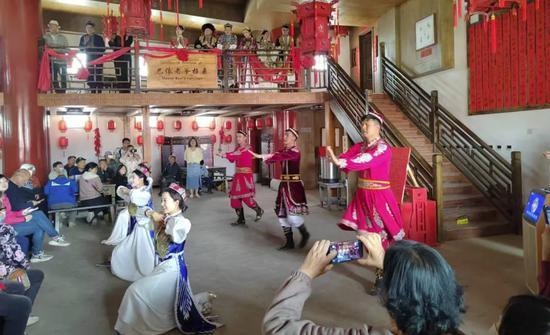 上午11时,库车市龟兹小巷入口处鼓乐齐鸣。身着民族盛装的舞者以赛乃姆迎宾舞拉开活动序幕,随后萨玛瓦尔舞、顶碗舞、现代舞等表演相继登场。婀娜的舞姿与古朴的街巷相映成趣,引得游客纷纷驻足观看,现场掌声经久不息。