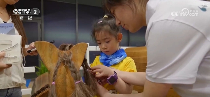 在马术比赛的现场,在观赛之余,还有各种马术文化的相关活动供观众体验。例如,骑上障碍赛骑手同款的赛级马鞍,尝试编发、绑护腿、装草球等活动,可以让观众体验马术文化的内涵。