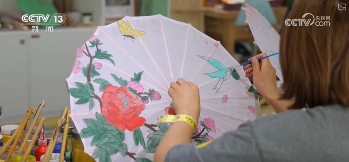 在浙江青山村,孩子们在趣味活动中尽情玩耍,8米高的巨型玩偶成为吸睛地标。音乐与萌宠主题的动画特展让游客化身“跳舞猫咪”,与20组动画IP趣味互动。金石篆刻、绸伞彩绘和木版年画等传统技艺,也为游客带来动静相宜的文化体验。