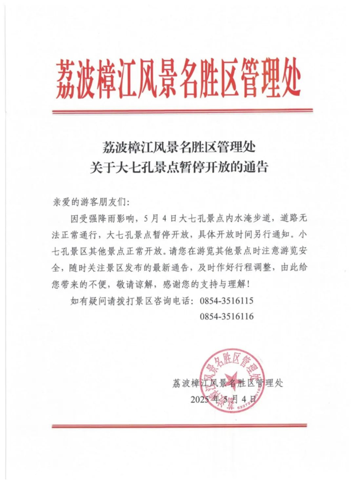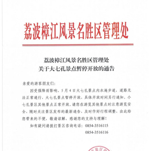 关于大七孔景点暂停开放的通告