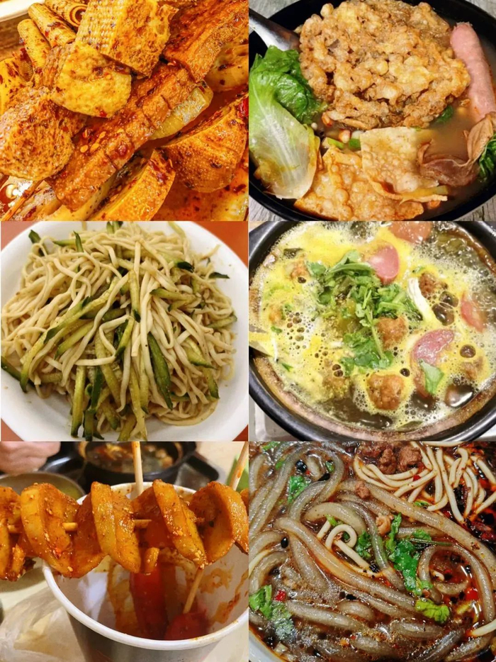 美食推荐:老歪麻辣烫、一个年轻小伙儿卖的煎饼果子、重庆饭店(宫保鸡丁盖饭)、砂锅米线,每周都会有新小吃出现,吃啥还得自己选……