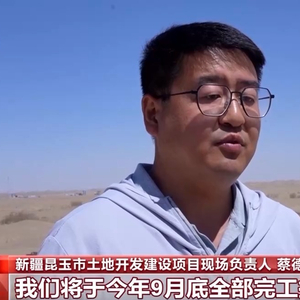 新疆昆玉市土地开发建设项目现场负责人 蔡德志:我们将于今年9月底全部完工投入使用,已完成现场总进度的75%。