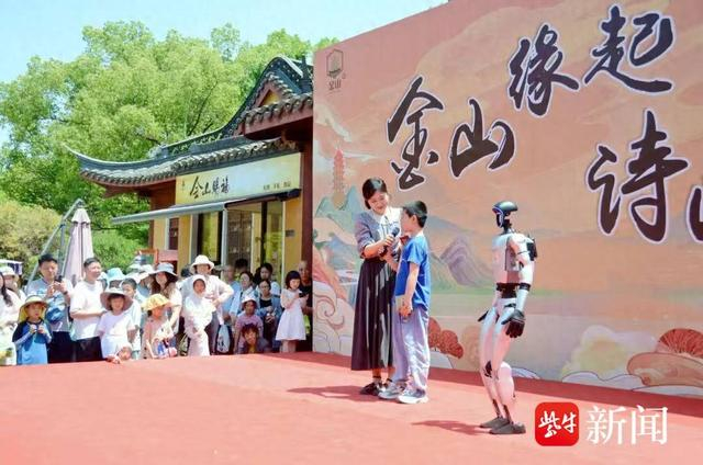 值得一提的是,大草坪舞台上,宇树机器人“金小智”和游客萌趣互动,其精彩表现赢得现场阵阵喝彩。金山菩提植物园的国风集市也是热闹非凡,国潮文创摊位前,精致的油纸伞、精美的发簪珠花吸引着众多游客挑选,大家都沉浸在古风古韵的欢乐氛围中。