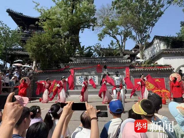 焦山景区内,“跟着乾隆游焦山”的队伍浩浩荡荡,游客们与古风NPC对话,仿佛被带回古代。一位游客激动地说:“这种游玩方式太有意思了,感觉自己也成了故事里的人!”