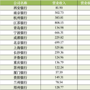 17家城商行去年年报盘点:西安银行营收增速领跑,青岛银行净利增速领跑
