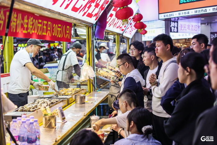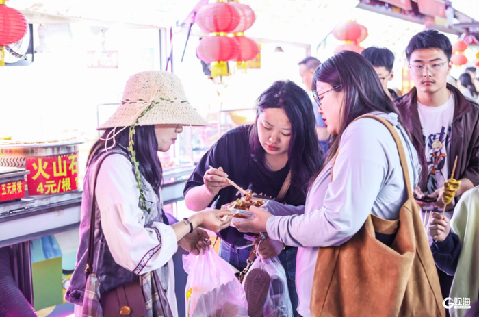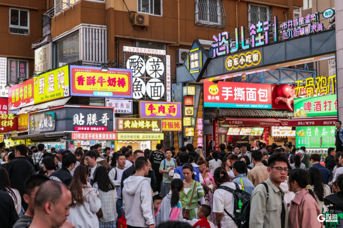 青岛日报社/观海新闻5月4日讯 “五一” 期间,台东步行街人山人海,游人如织,美食街恣儿街小吃琳琅满目,烟火盛景引客来。(青岛日报/观海新闻记者 余瑞新)