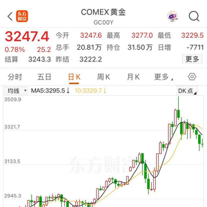 Wind数据显示,近期,国际金价整体回落,COMEX黄金期货5月2日收报3247.4美元/盎司,相比4月22日高点的3509.9美元/盎司,下降7.48%。