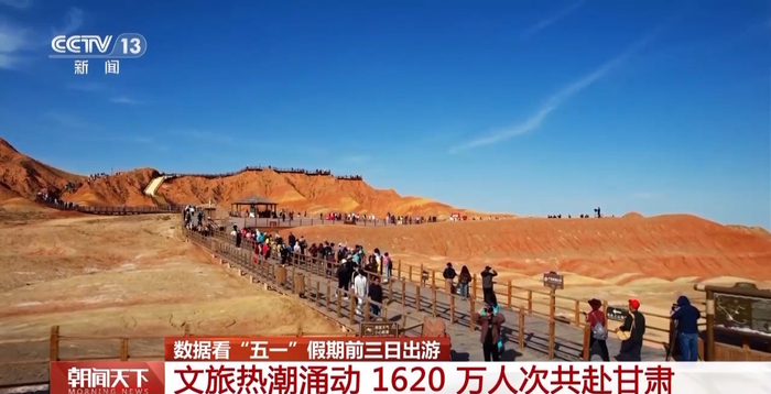 据甘肃省文旅厅统计,昨天(5月3日),甘肃共接待游客660万人次,较2024年同期增长5.4%。“五一”假期前3天,全省累计接待游客达1620万人次,较2024年同期增长6.86%,文旅市场热度持续攀升。