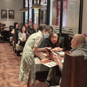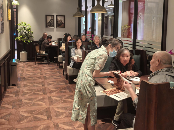 “生煎包、阳春面、老上海油爆虾、排骨烧年糕,这都是多少年的经典菜了,家里老人就爱吃这一口甜的。”趁着假期,市民高先生带着一家老小一起来聚餐,“浓油赤酱”的本帮菜,俘获了许多在座食客的味蕾。