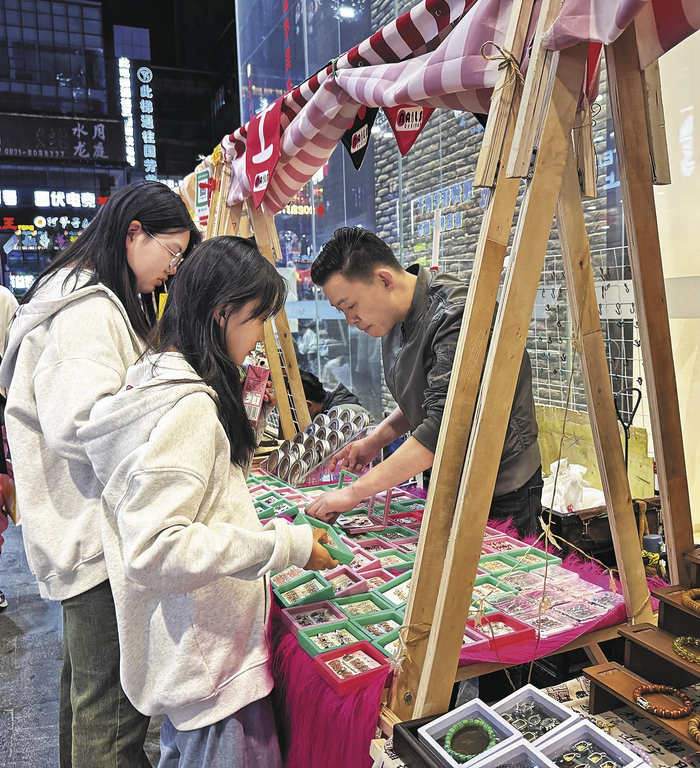 如今,随着省城夜市规范化管理的提升,也增强了摊主与市民的互动。市民简女士表示:“现在摊位整齐有序,逛夜市既方便又有趣。”此外,步行街还通过引入“夜食”“夜娱”等新业态,结合网红经济与潮流文化,为摊主们创造了更大的市场空间。