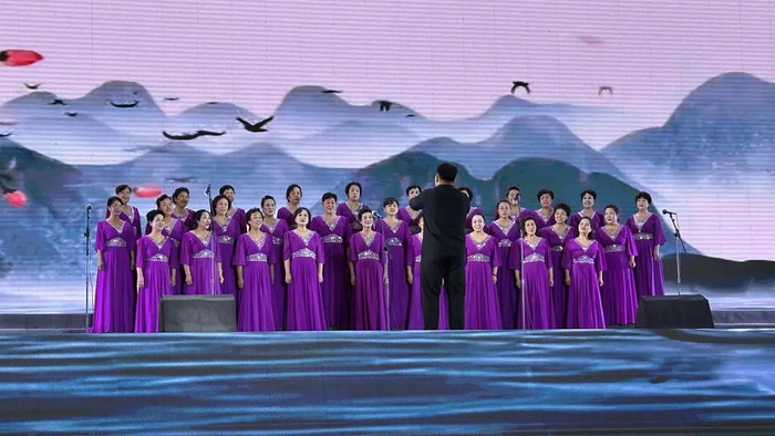 5月1日至3日每天19时,表演在流光溢彩的灯光中准时拉开帷幕,《春色满园》《爱的画卷》《最炫民族风》等优美多姿的舞蹈轮番登场。4日晚的合唱专场更是将《我是一个兵》《保卫黄河》等经典曲目以磅礴之势唱响母亲河畔,引得现场观众频频举起手机记录精彩瞬间。
