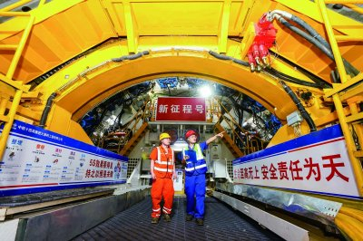 图2:位于长江中段50多米深处的中铁十四局南京地铁4号线二期过江隧道项目现场,70余名管理人员、170余名工人坚守在施工一线,确保工程进度。通讯员 李梦梦 南京日报/紫金山新闻记者 段仁虎 摄