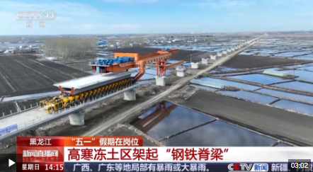 这个“五一”期间,许多建设者坚守岗位。杭州湾跨海铁路大桥跑出建设“加速度”,黑龙江高寒冻土区架起了“钢铁脊梁”。