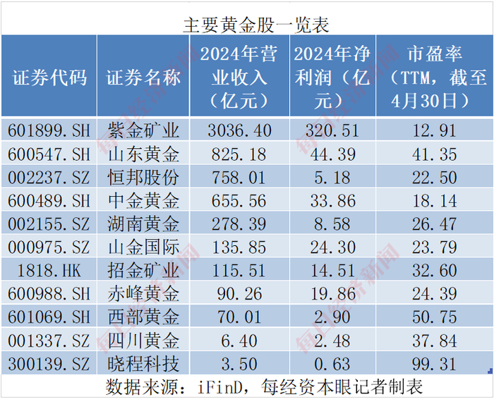 如赤峰黄金在2024年矿产金产品占利润的比例达94.68%,四川黄金在2024年金精矿产生的利润占公司总利润的比例达100%,这些都是比较“纯”的黄金股。