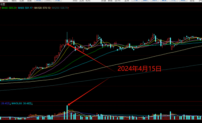 而观察历史走势,沪金指数加速上涨后出现天量阴线的情况并不多见。有两处类似的情况分别出现在2019年8月14日、2024年4月15日。
