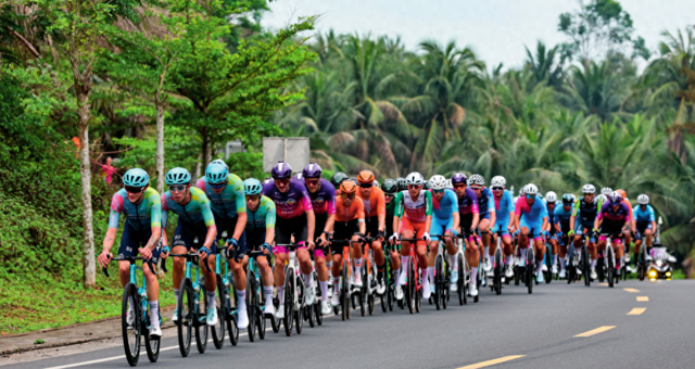 参赛车手在2025第十六届环海南岛国际公路自行车赛比赛中(2025年4月7日摄) 杨冠宇摄 / 《瞭望》新闻周刊